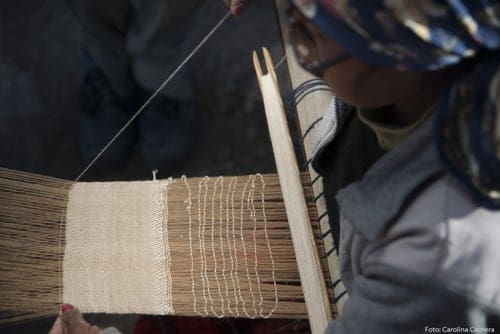 Fotografía de trabajadora en el proceso de producción artesanal de tejidos, polo opuesto a la producción en masa. Carolina Cabrera para ElPucara