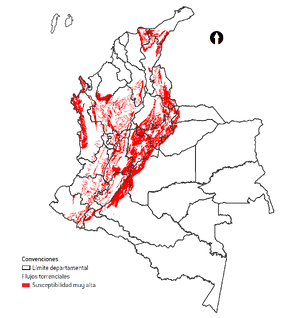 De los 32 departamentos que tiene Colombia, 7 de ellos concentran el 59% de las áreas más susceptibles a avenidas torrenciales, es decir, Chocó, Cundinamarca, Antioquia, Boyacá, Tolima, Santander y Caquetá. Adicionalmente, de acuerdo con el Departamento Nacional de Planeación -DNP, 12,4 millones de hectáreas en el país pueden presentar avenidas torrenciales altas, es decir el 10.8% de la superficie del país (DNP, 2018).