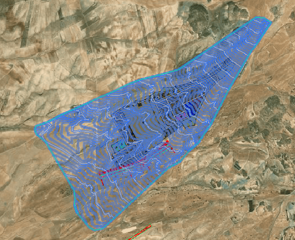 Figura 4. Superficie TIN “EG” (Existing Ground) creada a partir de la topografía proporcionada.