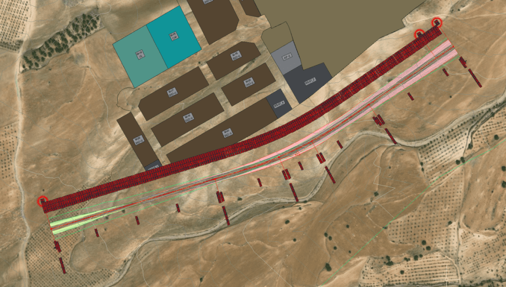 Figura 3. Ubicación del corredor ferroviario. Infraworks ayuda a analizar el espacio disponible, así como el impacto con otras infraestructuras y zonas urbanos. También la interferencia con servicios urbanos y cauces hidrológicos.