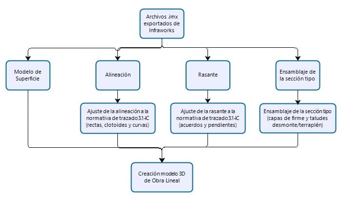 El diseño de la obra lineal se realizó mediante Civil 3D, versión 2021, siguiendo el esquema de trabajo mostrado en la Imagen 4.