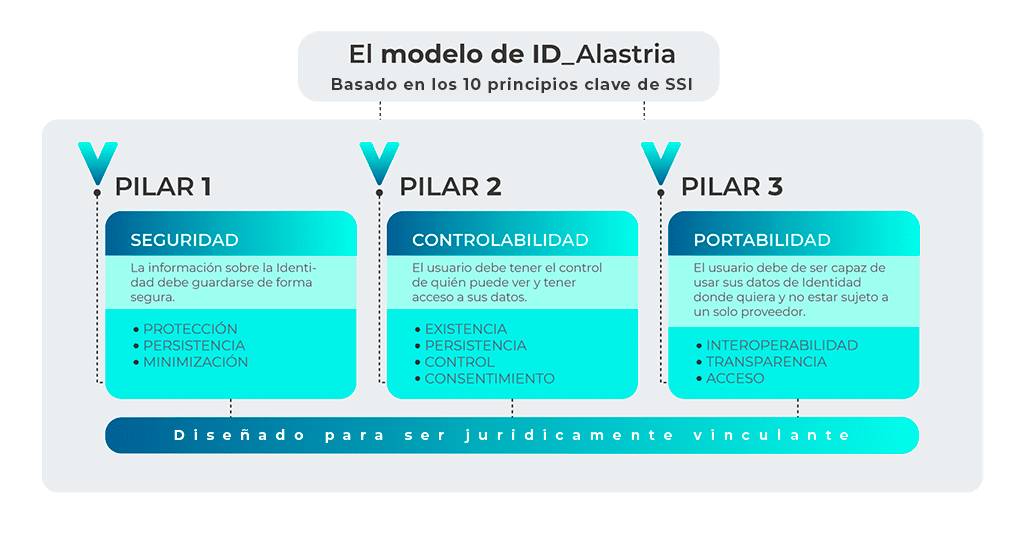 AlastriaID es el proyecto de Identidad Digital de la Comisión de Identidad de Alastria. Su propuesta de Identidad Digital en Blockchain pretende proporcionar un marco de infraestructura y desarrollo, para llevar a cabo proyectos de Identidad Digital Soberana, con plena validez legal en la zona euro, siguiendo las siguientes premisas: